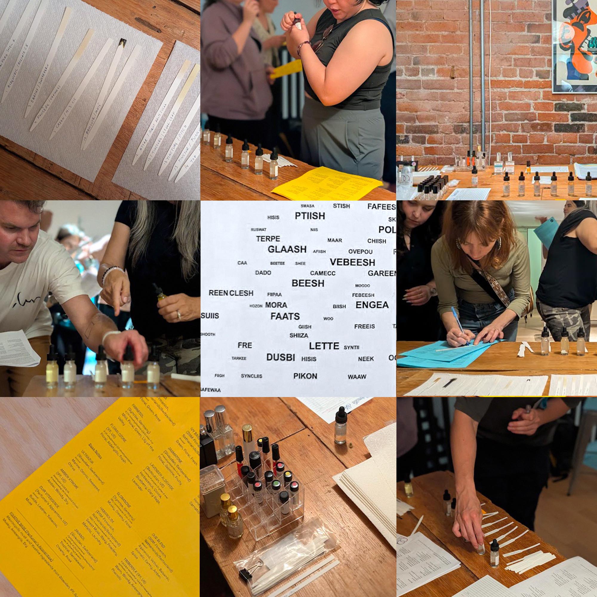 Mathew ArthurSmellworlds began as an amateur perfuming practice at the kitchen table during the Covid-19 pandemic and quickly turned into a how-to zine, an online archive of books about smell, and a series of academic workshops and talks. On August 19, 2025, we held a critical perfumery workshop for staff from Curiko, a local disability nonprofit. We learned about olfactory families, how STS and affect can help us to think critically about toxicity and desire, and made our own scents from a kit of aromachemicals, resins, and natural oils.